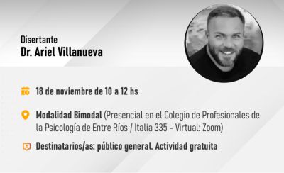 Las Jornadas se realizarán los días lunes 13, martes 14 y miércoles 15 de noviembre, de 17:00 a 19:00 horas en el Salón «Mercedes de Giusto», Colegio de Profesionales de la Psicología (CoPER), Italia 335. La actividad está destinada a estudiantes y comunidad graduada de las carreras de Salud Mental y de Formación Docente. Requiere inscripción previa.